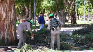 Se realizaron tareas de poda de eucaliptos en la Plaza Belgrano, mejorando la seguridad y el cuidado del espacio público.