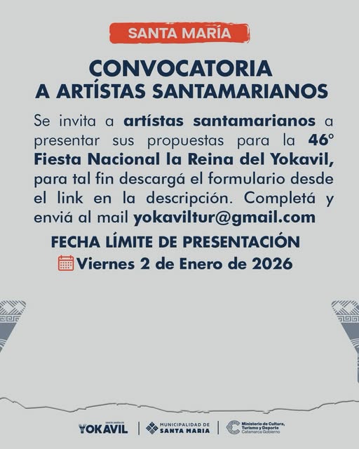 Si sos artista y querés ser parte de la 46° Fiesta Nacional de la Reina del Yokavil, esta es tu oportunidad.